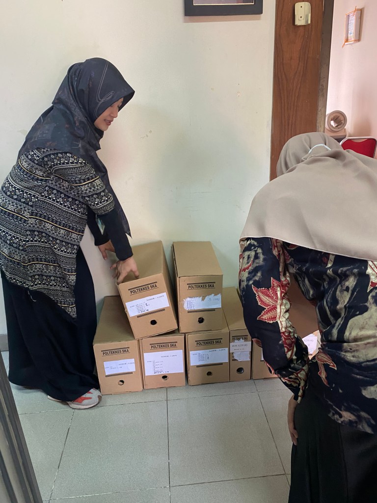 Surakarta – Tim Arsip Poltekkes Surakarta telah melaksanakan agenda penting dalam pengelolaan arsip dinamis dengan menyelesaikan kegiatan Pemindahan Arsip Inaktif dari dua unit pengolah, yaitu Jurusan Kebidanan dan Jurusan Jamu. Kegiatan ini dilaksanakan dalam dua tahap terpisah di Kampus 3 Poltekkes Surakarta. Tahap pertama berfokus pada Jurusan Kebidanan pada tanggal 14 Juli 2025, yang dilanjutkan dengan tahap kedua untuk Jurusan Jamu pada tanggal 28 Juli 2025. Pelaksanaan pemindahan arsip ini bertujuan untuk memelihara dan menata arsip inaktif secara terpusat di Unit Kearsipan, memastikan efisiensi ruang kerja di unit pengolah (jurusan), serta mempermudah temu kembali arsip di masa mendatang.