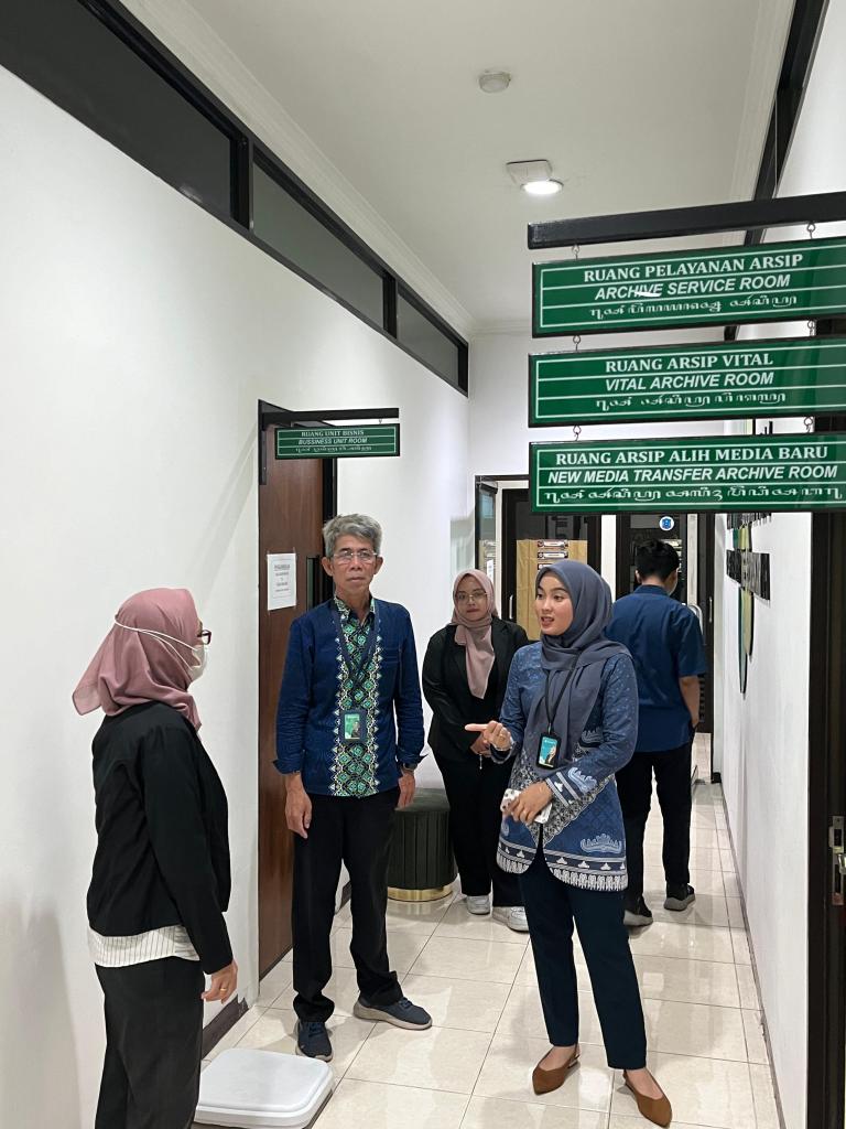 Setelah sesi penyambutan, kegiatan dilanjutkan dengan tinjauan langsung ke sarana dan prasarana kearsipan milik Poltekkes Surakarta, khususnya Record Center. Para peserta diajak melihat secara langsung bagaimana arsip inaktif dikelola, disimpan, dan dipelihara sesuai dengan kaidah kearsipan. Kunjungan lapangan ini memberikan perspektif praktis mengenai pengelolaan fisik arsip, mulai dari penataan ruang, penggunaan sarana penyimpanan, hingga sistem temu kembali arsip yang efisien.